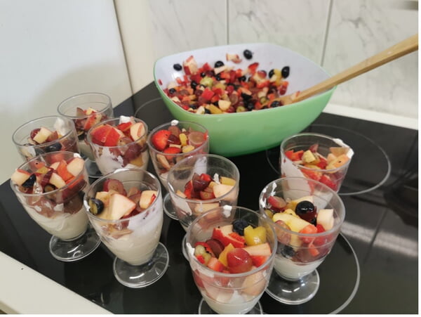 Die Kinder lernen, welche Lebensmittel gesund sind und warum Obst, Gemüse, Vollkornprodukte sowie Milchprodukte wichtig für ihren Körper sind. Gemeinsam bereiten wir abwechslungsreiche Gerichte zu, wie frische Obstsalate, selbstgemachte Vollkornpizza, Eiweißbrötchen, Karotten Tacos oder kleine Backwaren. Dabei probieren die Kinder immer wieder neue Zutaten und Rezepte aus und entdecken so neue Geschmacksrichtungen.